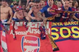 万博官方网站-枪手乱入巴萨球迷庆祝国王杯夺冠,展示了一面阿森纳旗帜
