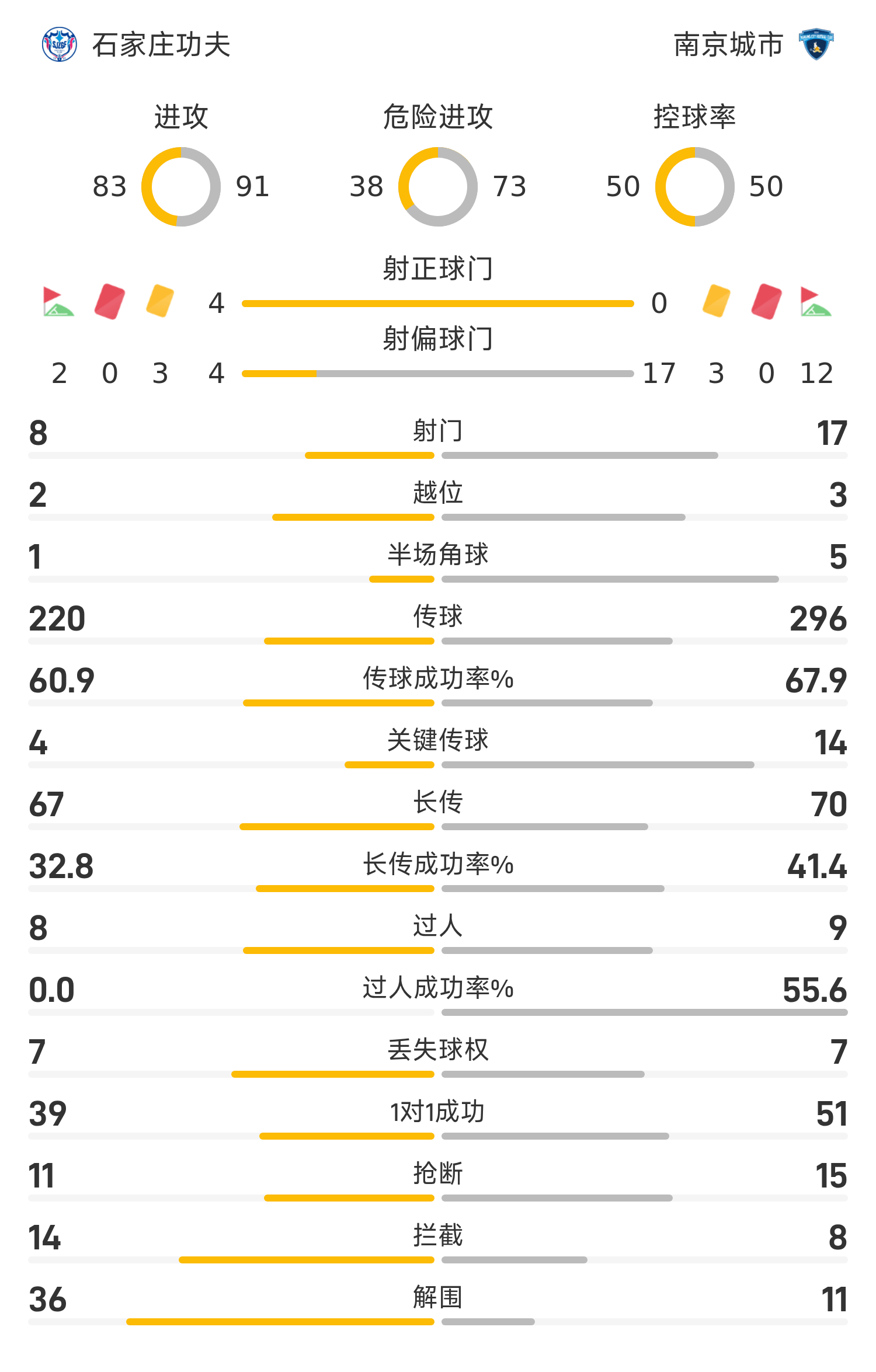 石家庄功夫首发阵容:31-栾毅;19-刘欢;20-刘乐;36-杨云;14-马冲冲;33-丹克莱尔;27-高华泽(82’6-陈哲宣);8-阿约维(70’7-刘子铭);10-安屹斐;29-王靖斌(70’11-朱海威);9-奥拉维奥(90’45-赵梓业)